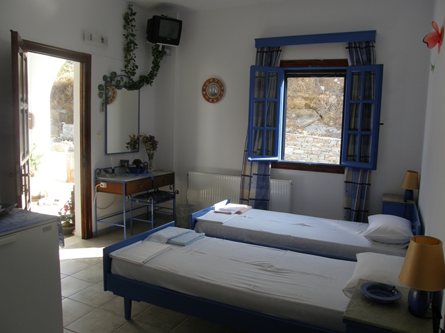 Με δεδομένη την αγάπη μας και το σεβασμό μας προς την ανάγκη σας να αποδράσετε από την πραγματικότητα που περιβάλλει τον καθένα μας, σας περιμένουμε να επισκεφτείτε τα δωμάτιά μας που βρίσκονται στον κεντρική επαρχιακή οδό Καμαρών-Απολλωνίας. Διακοσμημένα με μεράκι και αγάπη προσφέρουν ξεκούραση και ηρεμία. Αποτελούνται από ένα δίκλινο και ένα τρίκλινο δωμάτιο και είναι εφοδιασμένα με λουτρό, ψυγείο, τηλεόραση κλιματισμό (A/C) και ευρύχωρη βεράντα για να απολαύσετε τον καφέ σας και να διαβάσετε το βιβλίο σας.
